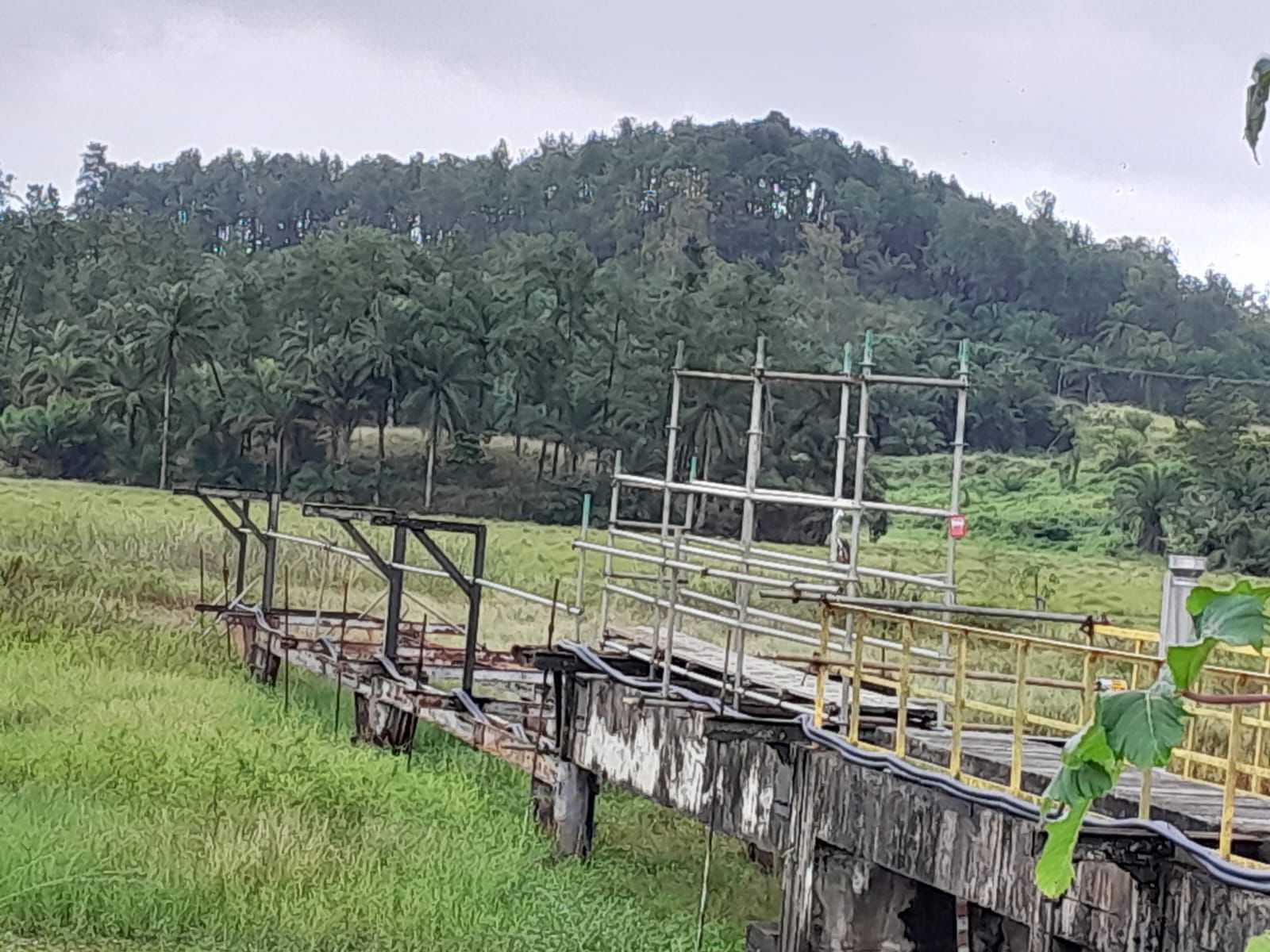 • Estrutura física do píer com ferrugem e sinais visíveis de abandono