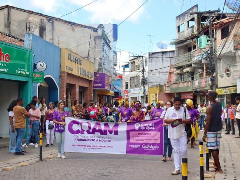 Caminhada em Santo Amaro reúne centenas de pessoas pelo fim da violência contra a mulher
