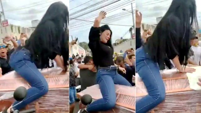 Viúva rebola em cima de caixão do marido no Equador e deixa internautas indignados