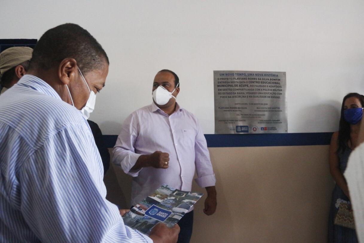 Nesta quinta-feira (13), foi entregue à população o Centro Educacional Municipal de Acupe (CEMAC), totalmente reformado e ampliado. O ato de entrega foi realizado pelo prefeito, Flaviano Bonfim, e o vice-prefeito, Justino Oliveira, e demais autoridades, sem a presença da comunidade, em virtude da pandemia. A unidade escolar será a segunda no município a implantar o Sistema Militar de Ensino.