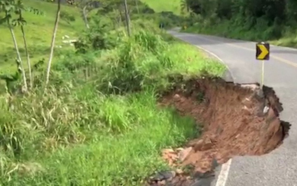 Parte da pista cedeu na BA-510, na região de Santo Amaro, recôncavo baiano, e a situação preocupa moradores da região por causa de uma cratera que se formou no local.