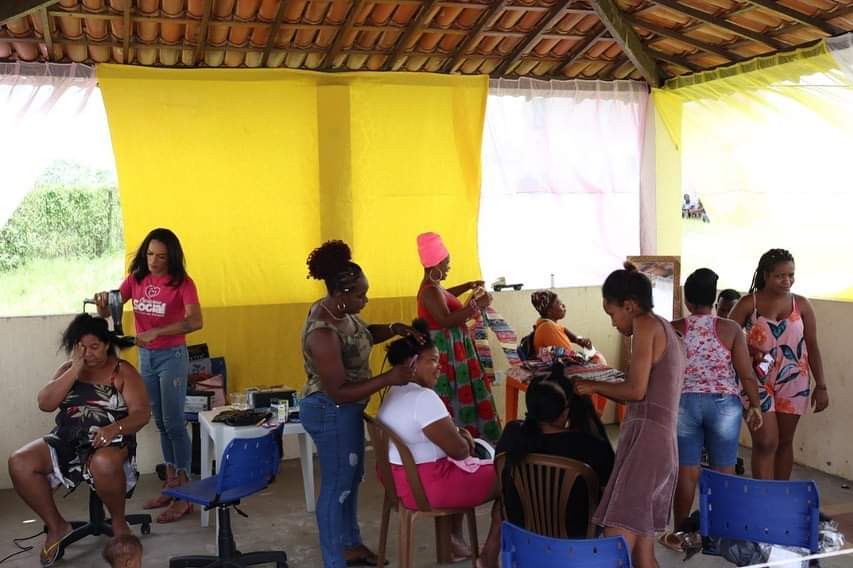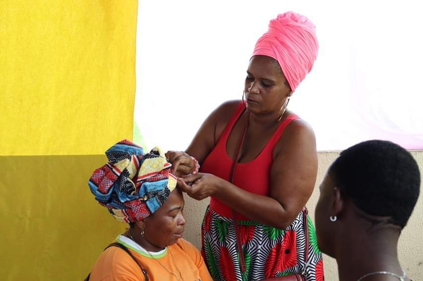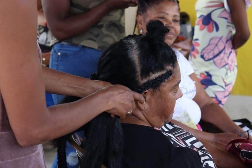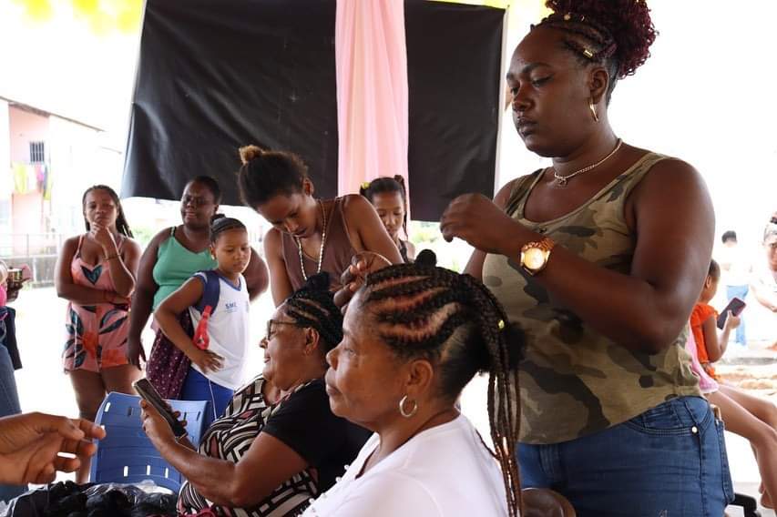 Durante o evento, que aconteceu nesta quarta (21), a comunidade teve a oportunidade de dar um trato na beleza com serviços de tranças, design de sobrancelha, além de ideias de embelezamento e empoderamento feminino com turbantes.