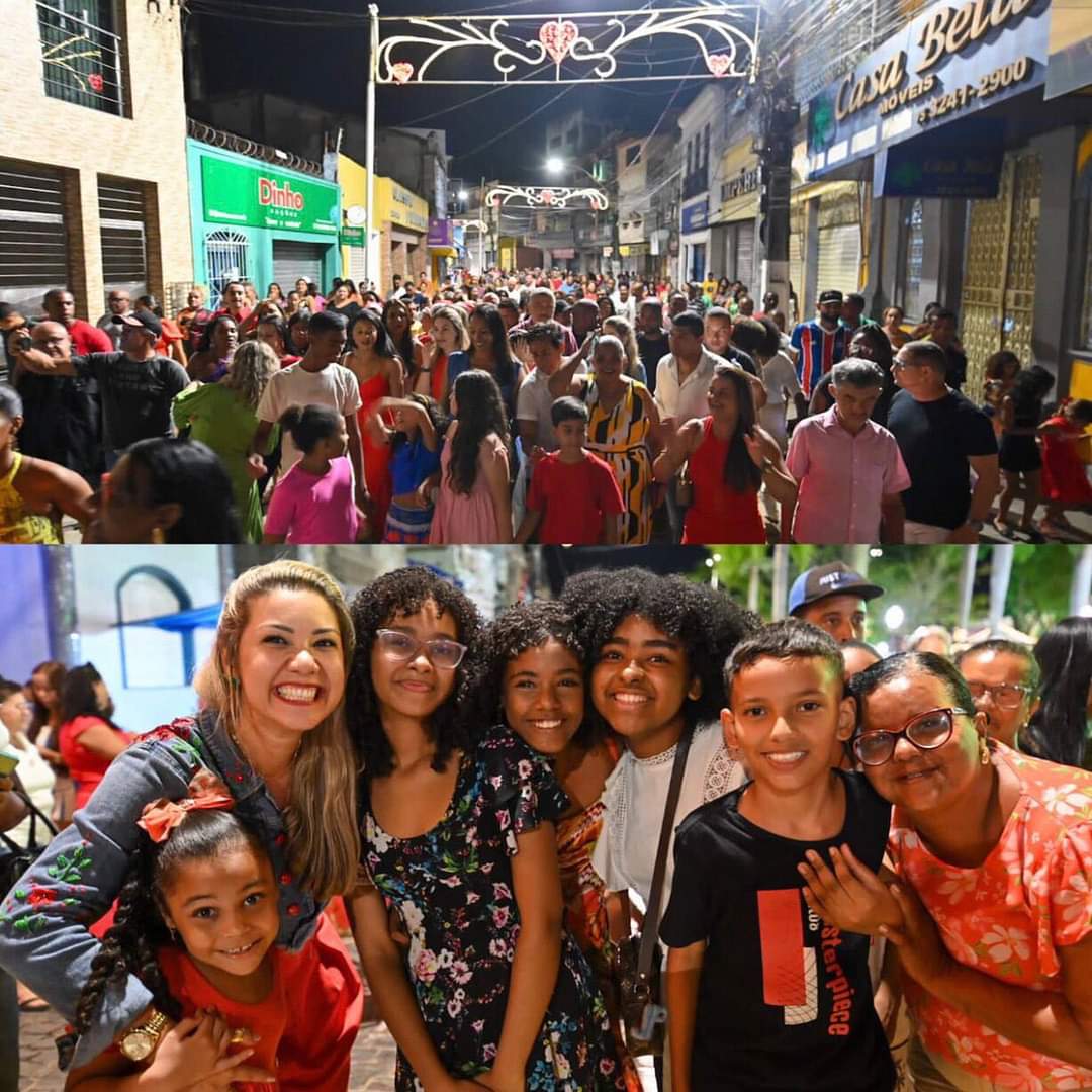 A prefeita Alessandra Gomes, acompanhada por seu esposo Ricardo Machado, assessor do governador Jerônimo Rodrigues e ex-prefeito da cidade, irradiava alegria ao lado da multidão que se uniu para celebrar essa ocasião especial.