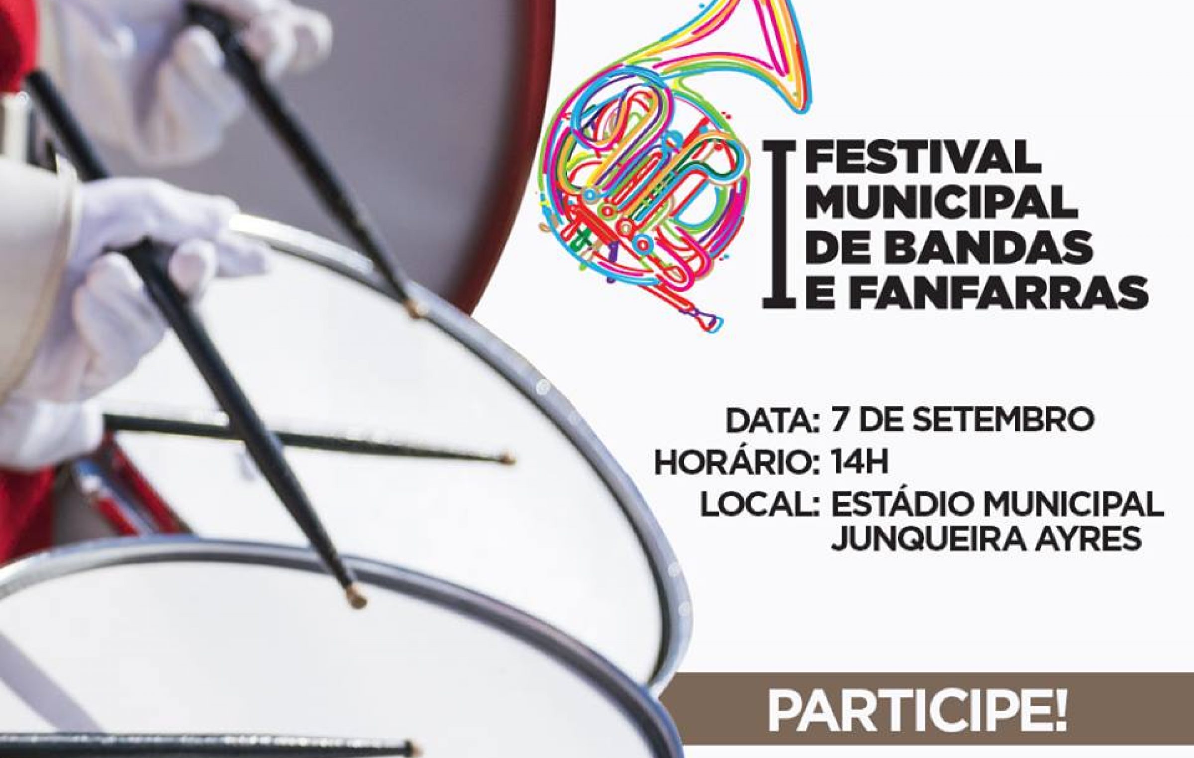 Neste sábado, dia 07 de setembro, data em que é comemorado o Dia Municipal de Bandas e Fanfarras, a Prefeitura de São Francisco do Conde irá realizar o I Festival Municipal de Bandas e Fanfarras. O evento, que acontecerá no Estádio Municipal Junqueira Ayres, às 14h, contará com apresentações e shows para a comunidade.