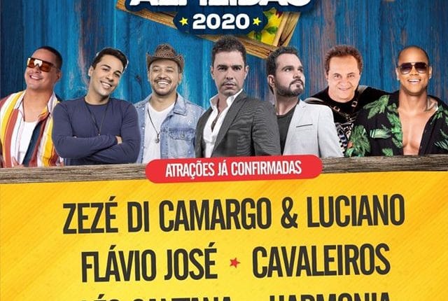 Intitulada “São João do Almeidão 2020”, a festa foi divulgada pela gestão municipal no último dia 3. O banner compartilhado na página do Facebook diz que as atrações já confirmadas são Harmonia do Samba, Cavaleiros do Forró, Zezé de Camargo e Luciano, Flávio José e Léo Santana. Essas atrações vão se apresentar no palco “Cidade Feliz”, mas a data de cada show ainda não foi divulgada.