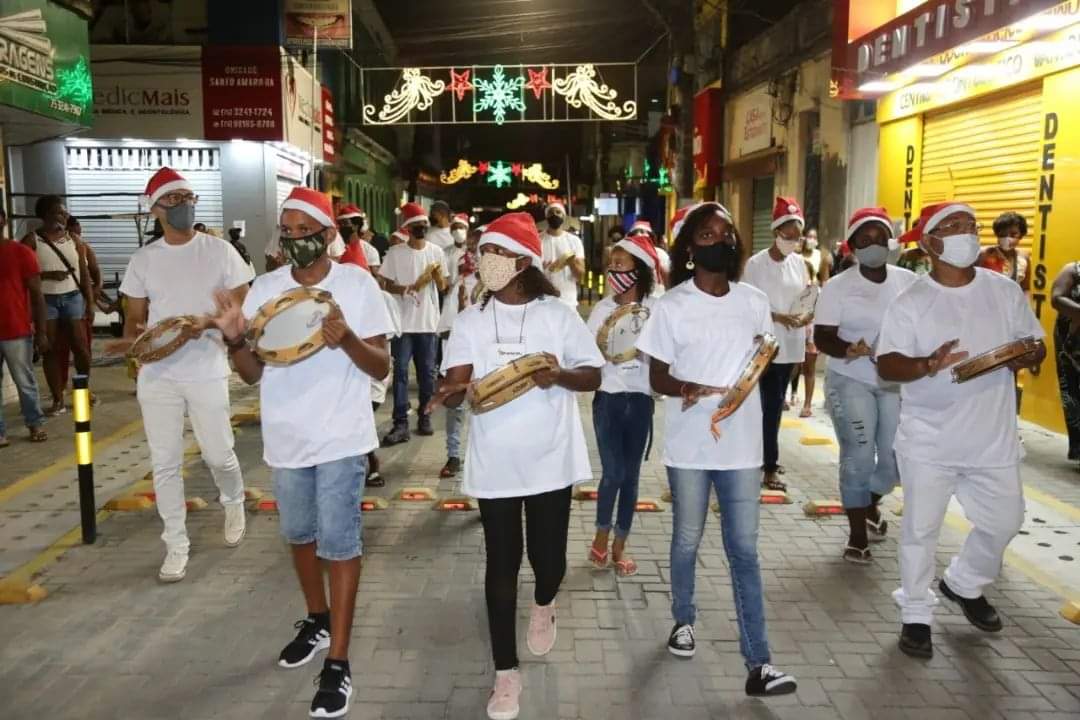Já à noite, a Orquesta de Pandeiros levou música de verdade para o comércio. O público presente no Calçadão dançou e se animou com a presença das crianças, que deram um show de coordenação e ritmo.