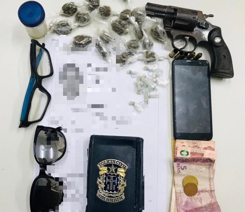 Foram apreendidos no local do confronto, 18 buchas de maconha, 15 pedras de crack, um revolver calibre .32, com duas munições intactas e três deflagradas, além de uma quantia em dinheiro.