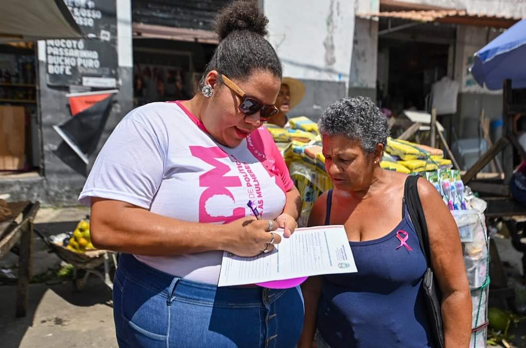 As nossas meninas da Secretaria de Política para as Mulheres – SPM – caminharam, nesta manhã, por todo o mercado conscientizando mulheres e fazendo quiz para saber a demanda de mulheres que precisam de mamografia na nossa cidade.