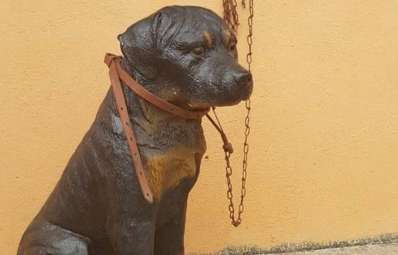 Uma denúncia de maus-tratos contra animais terminou de forma inusitada. De acordo com a denúncia, o cachorro estaria sendo deixado por vários dias exposto ao sol e preso a uma corrente. Ao chegar ao local, a polícia se deparou com um enfeite de plástico.