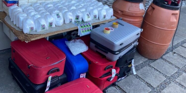 A droga foi encontrada em um imóvel usado como laboratório e ponto de distribuição do material. O entorpecente estava dividido em tabletes e armazenado em tonéis e malas.