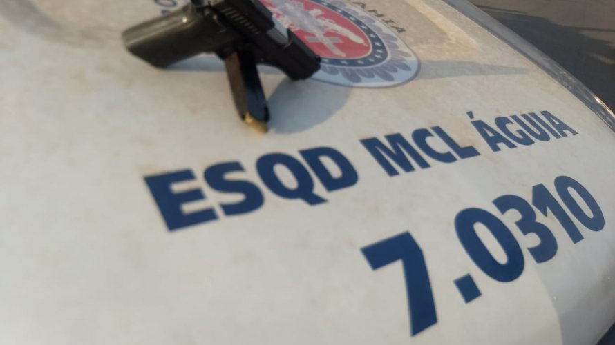 No carro foram encontrados: uma Pistola Taurus, Modelo 938, com três munições intactas e uma picotada, além de três aparelhos celulares, um relógio dourado, uma corrente dourada e um brinco dourado.