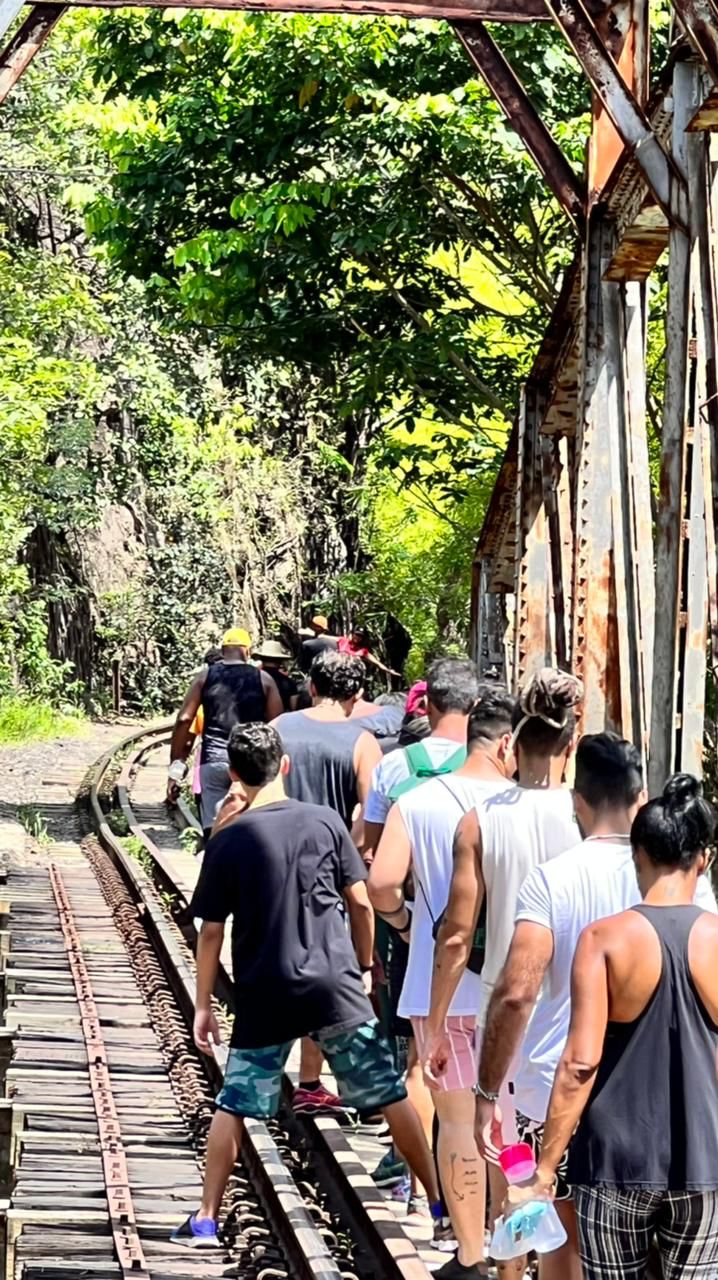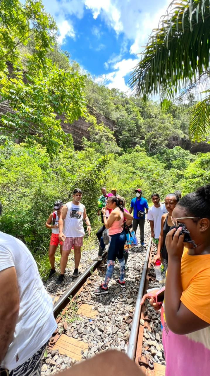 De lá, numa espécie de fila indiana, a equipe seguiu a pé por um percurso de aproximadamente dois 2km cercado de uma vegetação encostadora e por paredões de beleza singular.