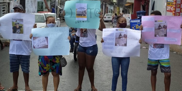 Parentes e amigos de Yan Barros e Bruno Barros, tio e sobrinho encontrados mortos com sinais de tortura, em Salvador, fizeram uma manifestação nesta sexta (30), na rua onde eles moravam, em Fazenda Coutos, e depois dentro do Atacadão Atakarejo, que fica no mesmo bairro. Integrantes do movimento negro e políticos identificados com a causa também integraram o protesto.