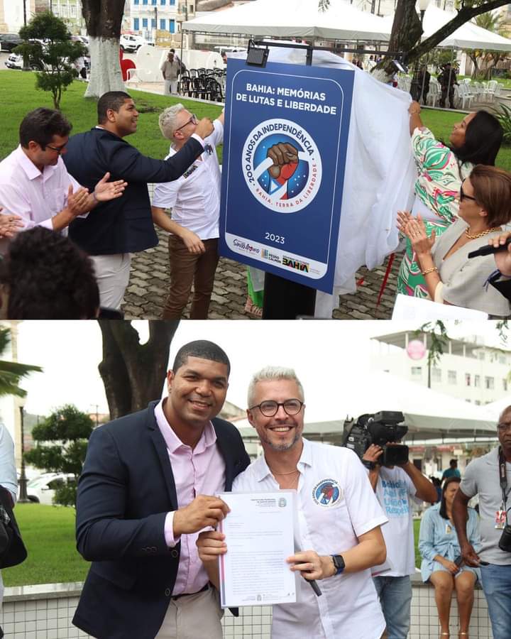 Foi inaugurado na manhã desta quarta-feira, 14 de junho, um pórtico alusivo às comemorações do bicentenário da Independência do Brasil na Bahia. O marco foi instalado na praça da Purificação, bem no coração de Santo Amaro, cidade de grande relevância nesse processo histórico, já que foi daqui que partiu a ata de vereação representando o primeiro documento oficial separatista do Brasil de Portugal.